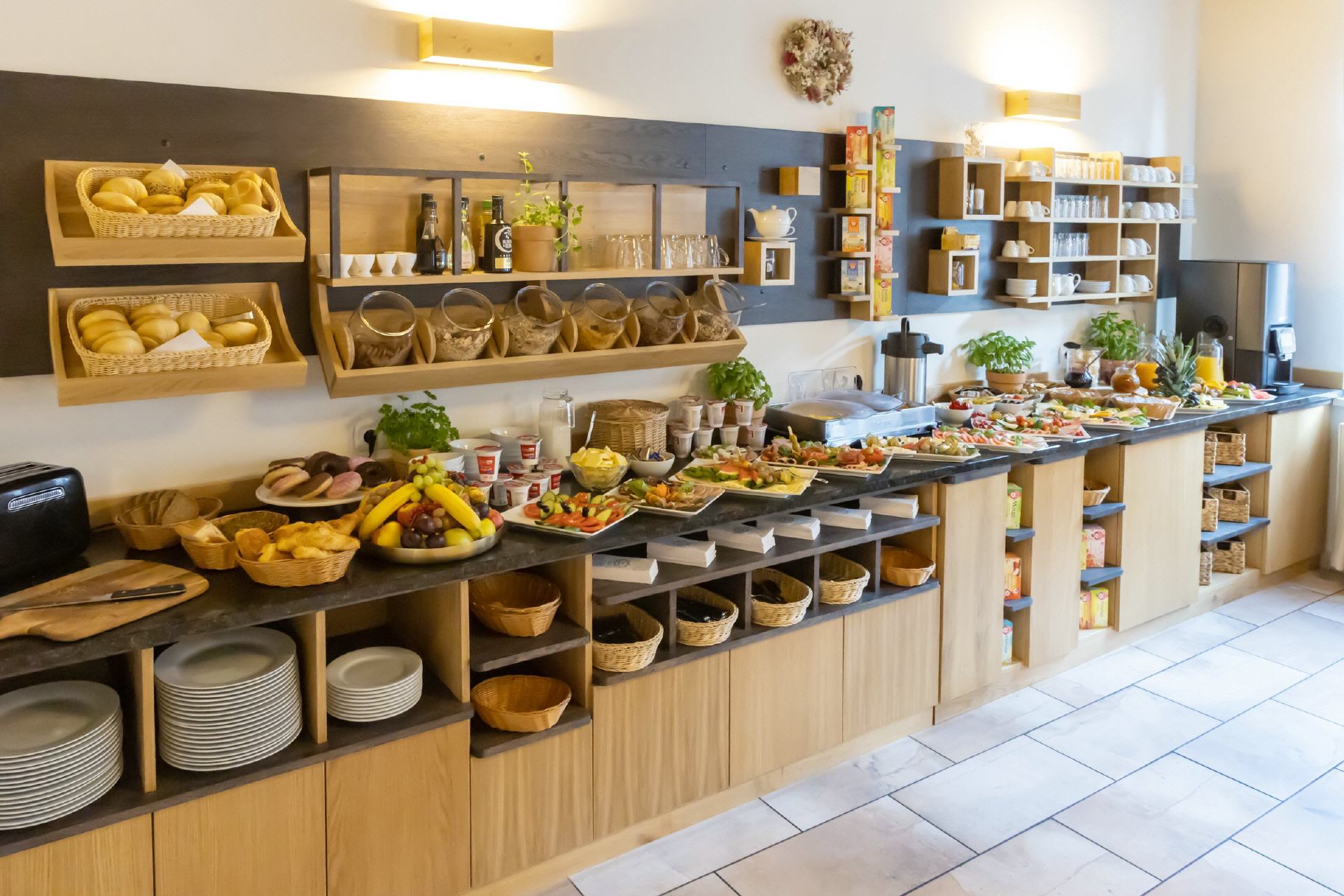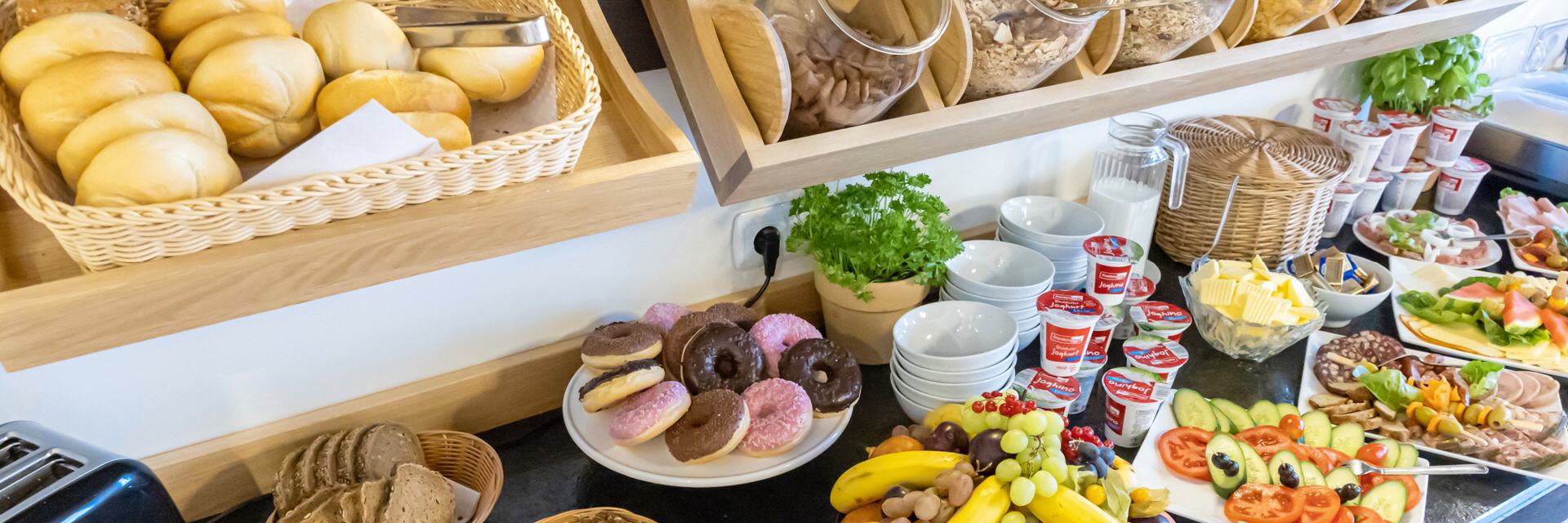 Nach entspannter ruhiger Nacht ausgeruht in den neuen Tag starten? Nicht ohne ein reichhaltiges und abwechslungsreiches Frühstück in unserem hellen und freundlichen Frühstücksbereich.